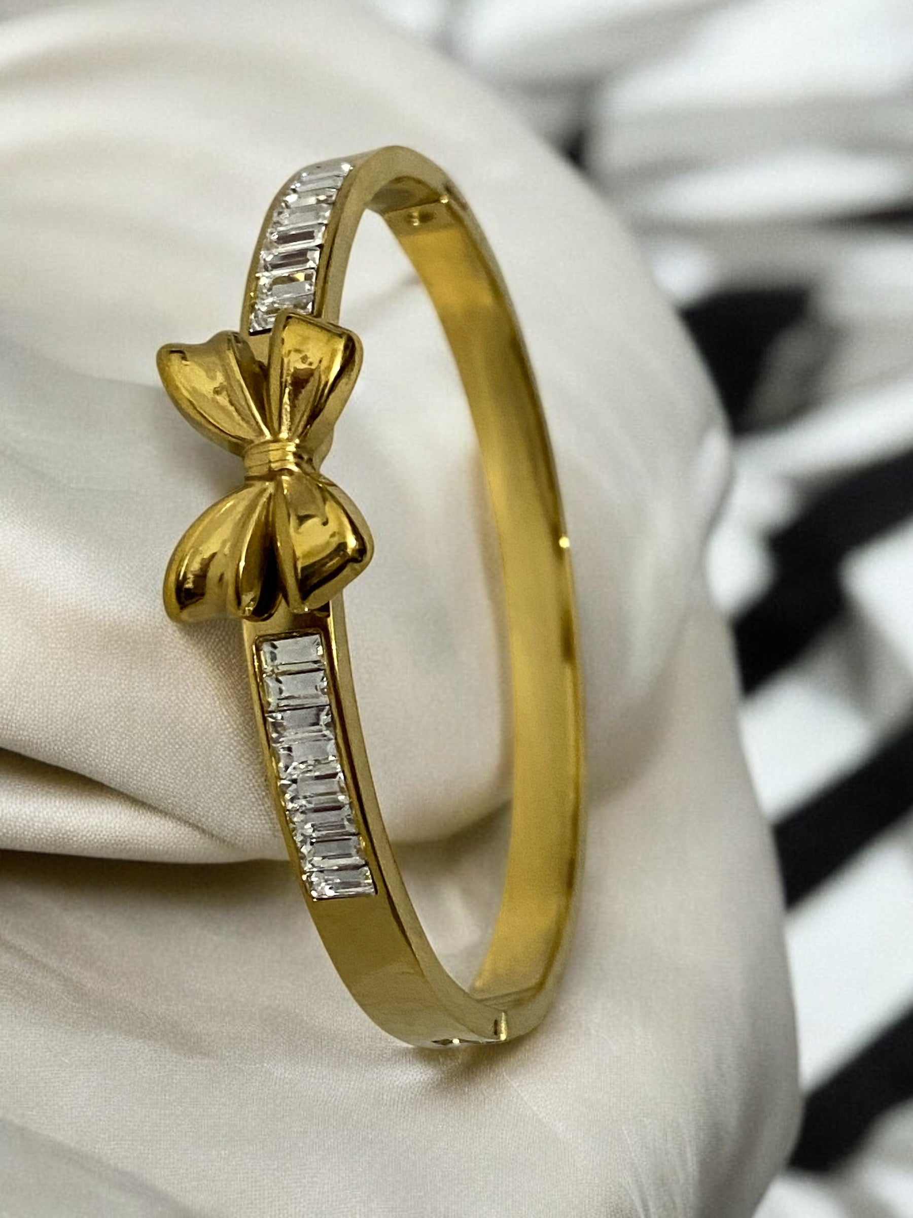 Elegant Anti-Tarnish & American Diamond Combination Bow Design Bracelet - A Timeless Piece of Luxury