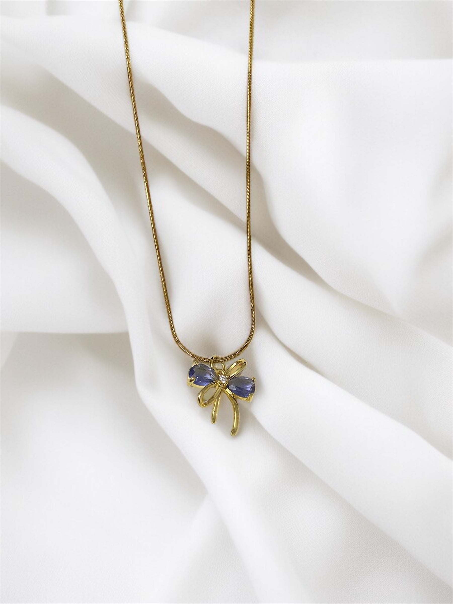 Anti-Tarnish Gold-Plated Small Purple Bow Pendant Chain for Women & Girls – Cute, Elegant & Long-Lasting Necklace