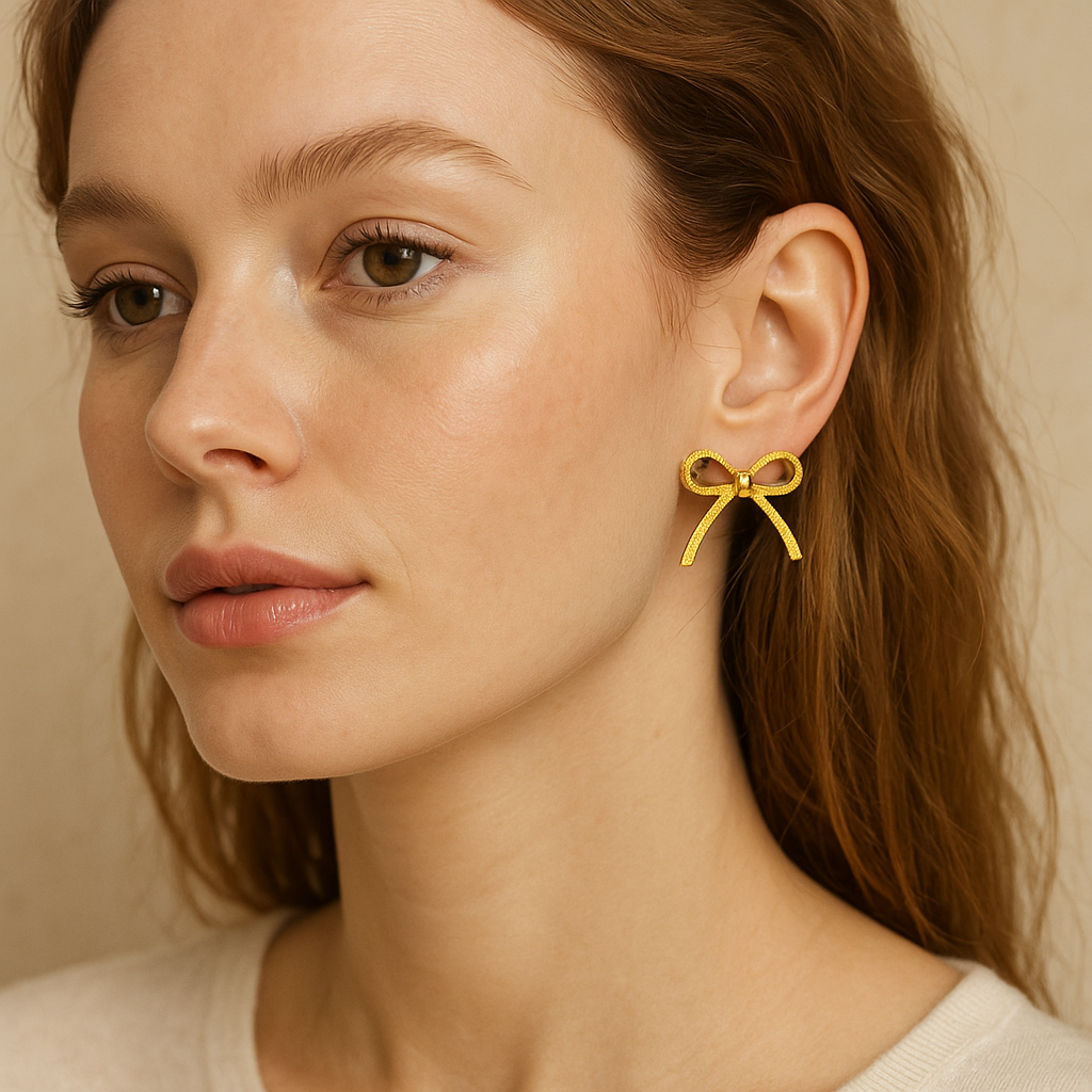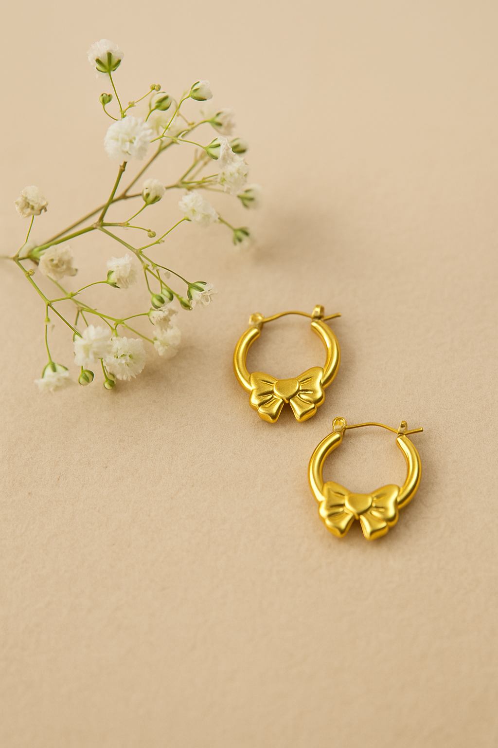 Anti-Tarnish Heart & Bow Design Earrings and Pendant Chain Set – Elegant & Lightweight Jewelry for Women & Girls