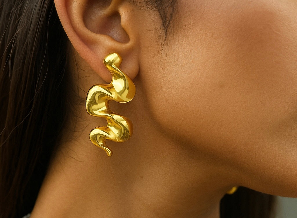 Anti-Tarnish Floral Design Large Earrings - Timeless Beauty and Durability