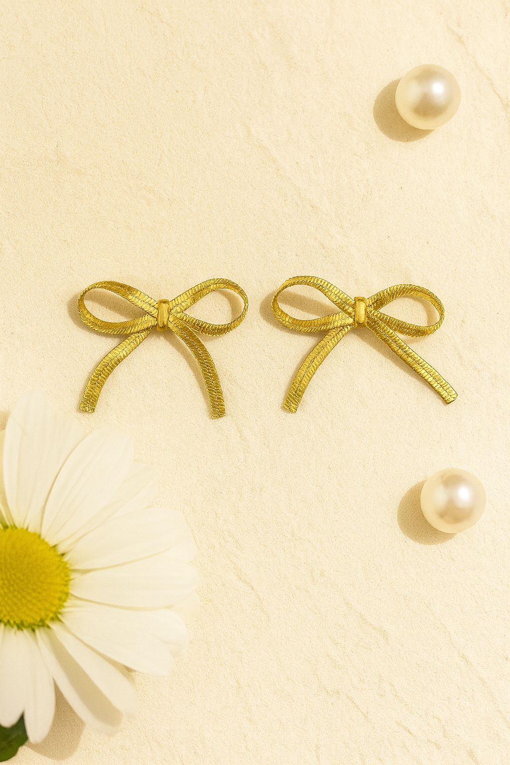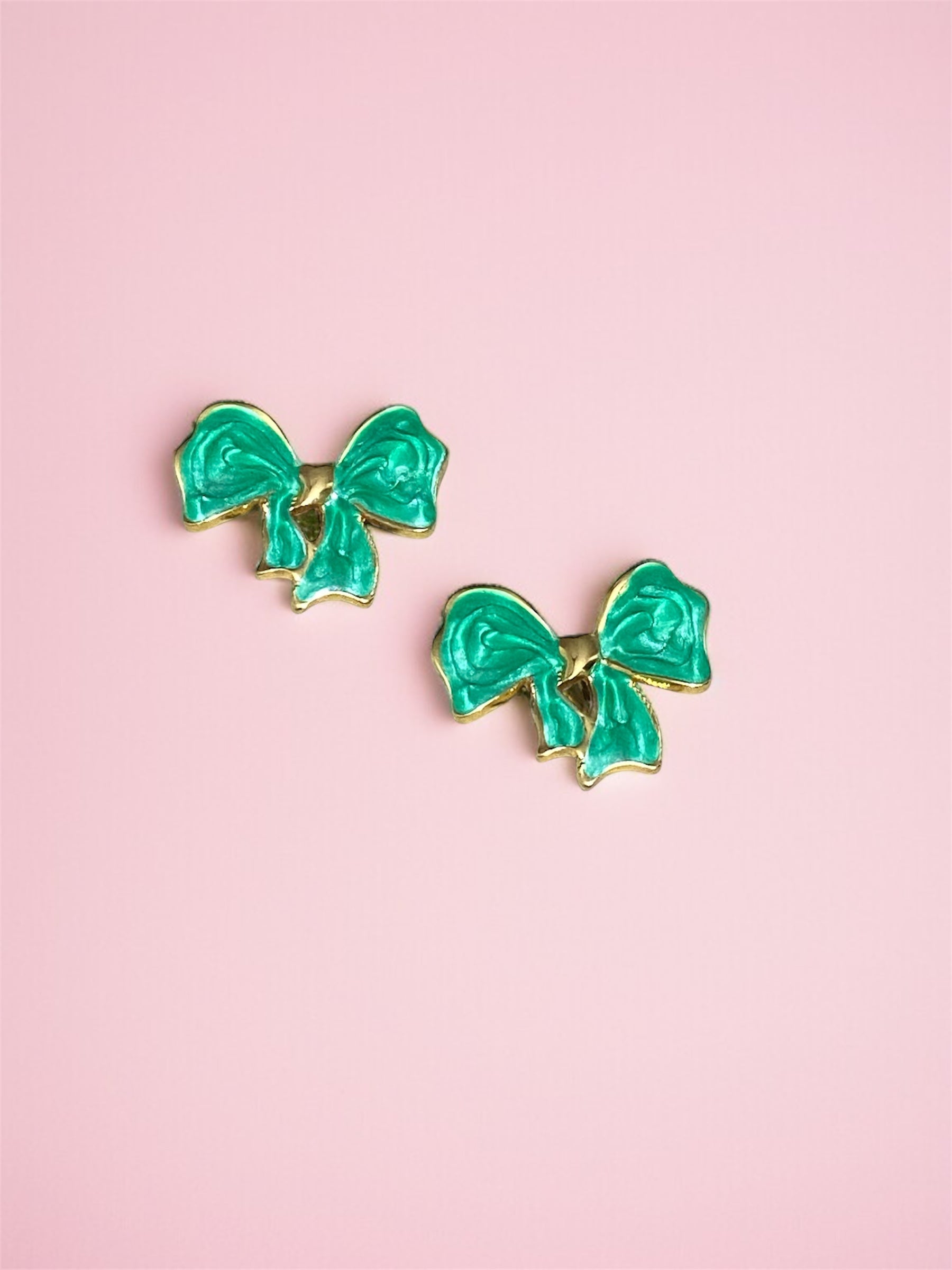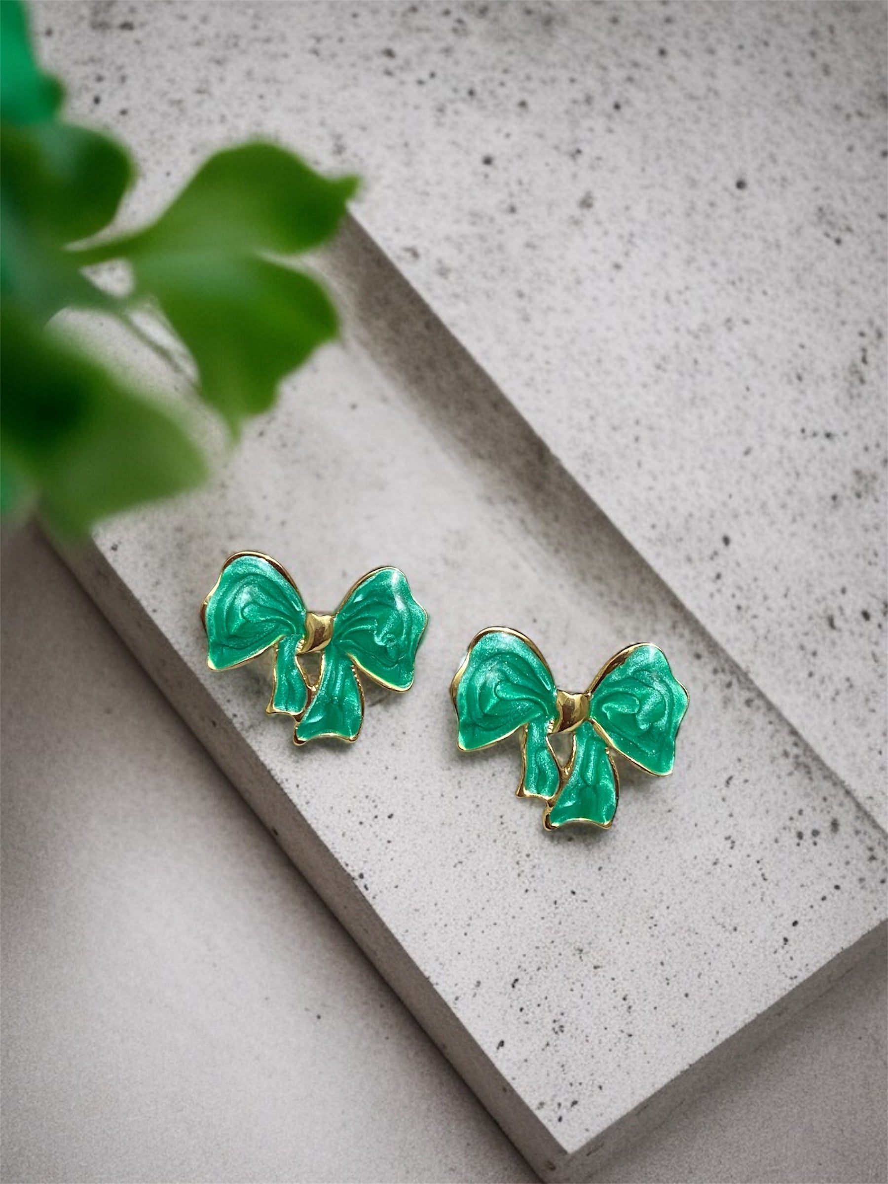 Anti-Tarnish Stainless Steel Bow Earrings for Women & Girls | Cute Green Enamel Designer Studs