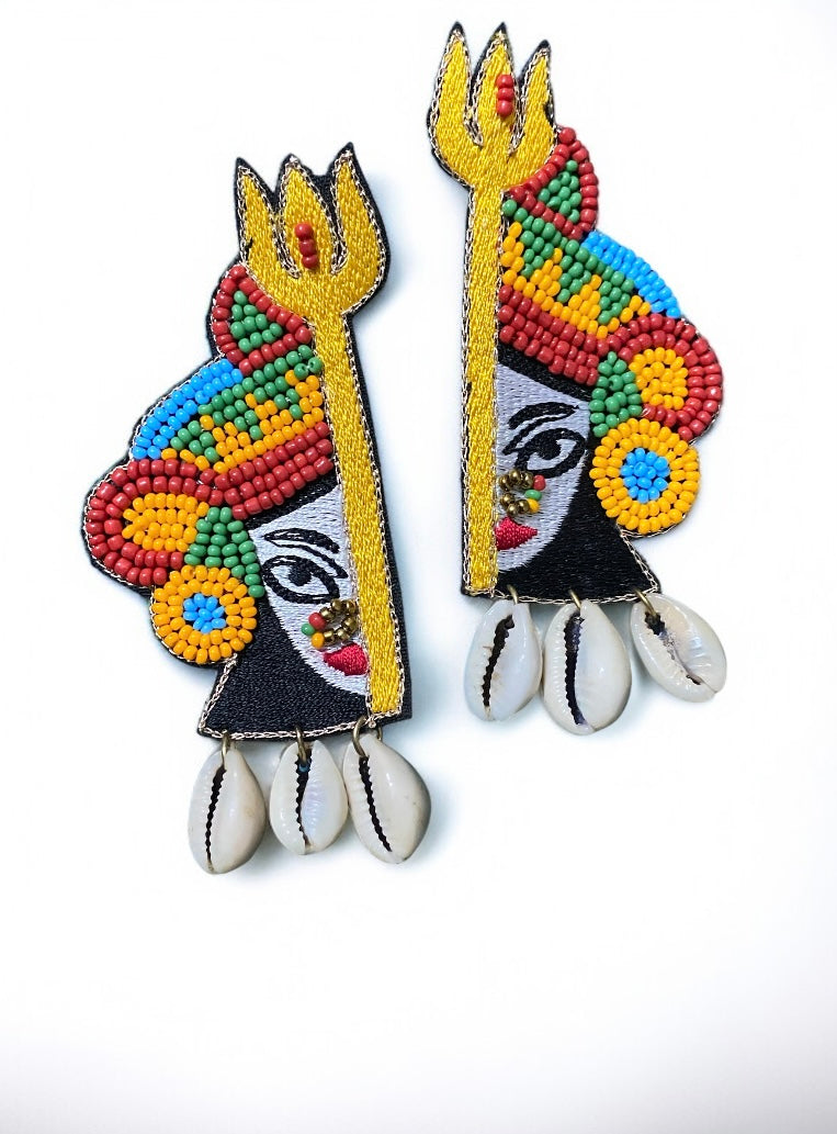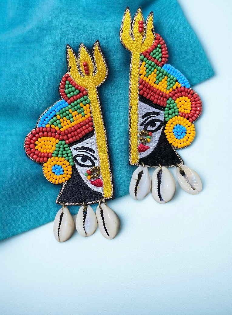 Handmade Beaded Durga Dangler Lightweight Earrings for Women & Girls – Special Navratri Jewelry