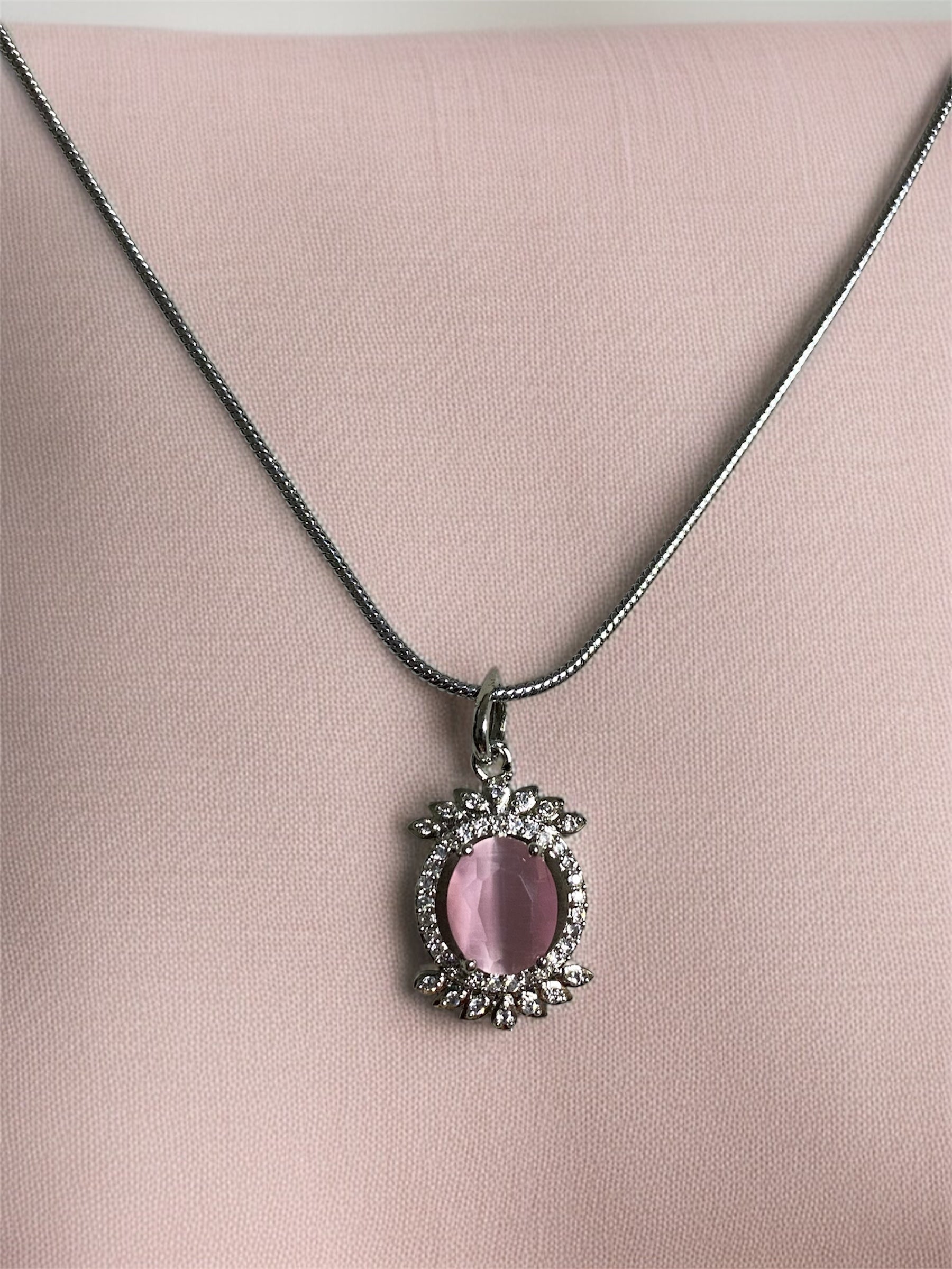 Elegant Pink American Diamond Pendant with Chain | Minimalist Daily Wear Necklace for Women & Girls