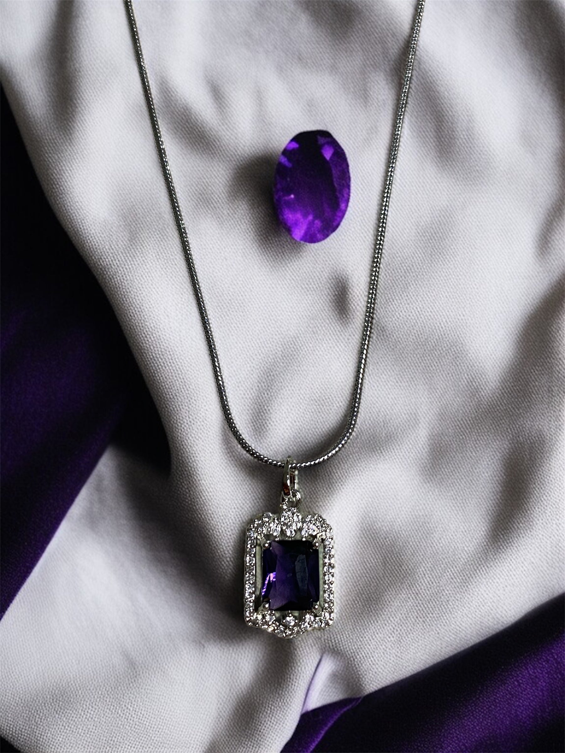 Elegant Purple American Diamond Pendant with Chain | Stylish Daily Wear Necklace for Women & Girls